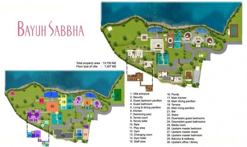 The estate also has a full-size outdoor tennis court. Floodlit for night games, the court is another fantastic addition to the Bayuh Sabbha estate.