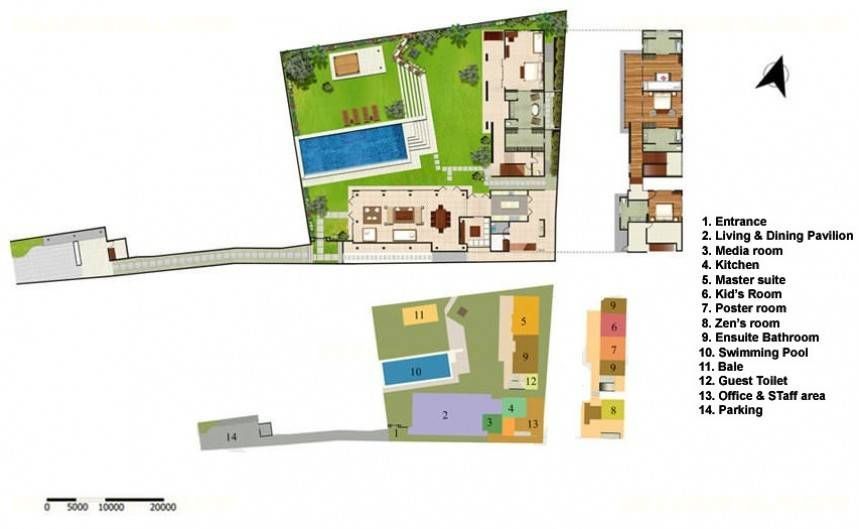 The contemporary Balinese architectural design presents a splendid, single-storey, thatched pavilion housing a living & dining area, air-conditioned TV room, and modern kitchen; this is adjacent to a two storey building incorporating four air-conditioned bedrooms complete with ensuite bathrooms, a balcony and a terrace.