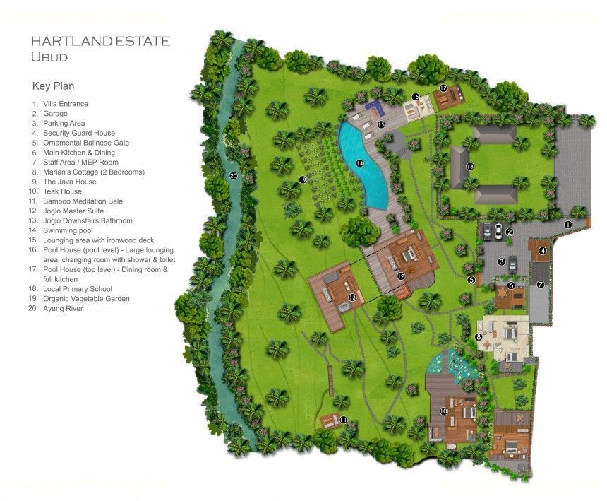 Villa Hartland Estate is nestled into the slopes of Ubud's scenic Sayan Ridge and overlooking a patchwork of rice paddies beside the Ayung River lies Bali's latest work of art - a thoughtfully conceived and charmingly executed Luxury 5 bedroom Luxury Bali Retreat - only a 7 minute drive from the centre of Ubud.