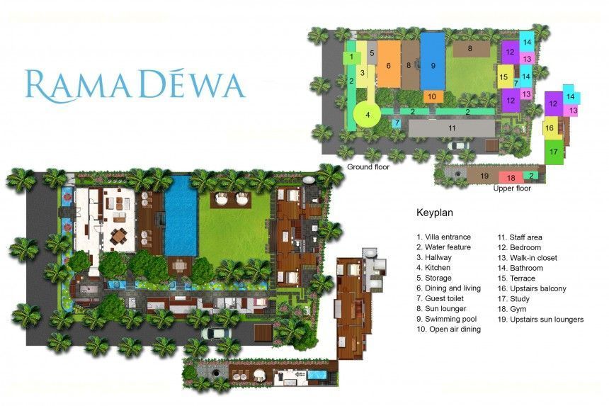 Villa Ramadewa offers 3 separate suites which are designed to accommodate as many as 6 guests in total. The top floor, owner's master suite features a king sized bed, ensuite bathroom with bathtub and shower, and a walk-in robe. A terrace separates the bedroom from the private study. Both downstairs suites Dewi and Java feature Queen size beds and private ensuite bathrooms with indoor / outdoor shower options.